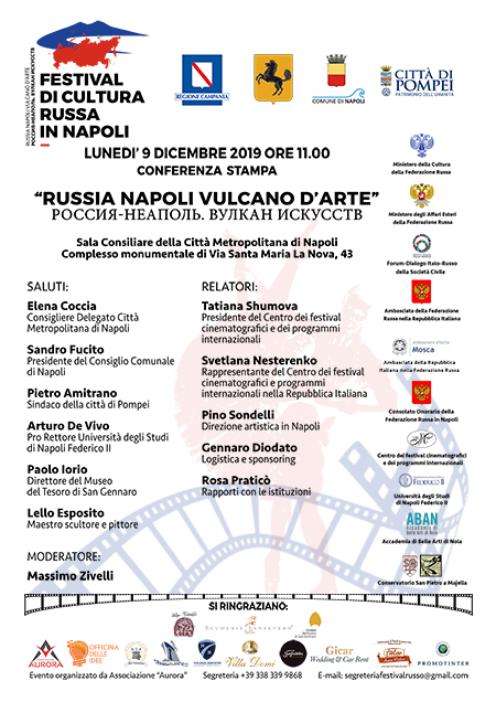 La Russia e Napoli. Un intreccio di arte, cultura e passioni comuni, iniziato ai tempi del Gran Tour e che non si è mai allentato nel corso degli ultimi due secoli. E che anzi rivive ai giorni nostri per celebrare la feconda contaminazione che ha pervaso l’opera di pittori, scultori, letterati, musicisti, così come anche gente del Cinema e del Teatro. Si svolgerà lunedi 9 dicembre, con inizio alle ore 1100, presso il Complesso monumentale di S. Maria La Nova, patrimonio della Città Metropolitana di Napoli, “RUSSIA NAPOLI VULCANO D’ARTE” l’evento in anteprima e conferenza stampa di presentazione della prima edizione del “Festival di Cultura Russa in Napoli” che si articolerà a giugno prossimo attraverso una serie di eventi internazionali, nelle location più suggestive della città di Napoli e della città di Pompei, e con la partecipazione di importanti esponenti del Cinema, del Teatro, della Cultura e dell’Arte della Federazione Russa, nel segno della presenza e del contributo che la “napoletanità” – intesa anche come tradizioni – ha dato ad esse. All’incontro di lunedì con la stampa, porteranno i loro saluti istituzionali Elena Coccia per la Città Metropolitana, il Presidente del Consiglio Comunale di Napoli Sandro Fucito, il Sindaco di Pompei Pietro Amitrano, Arturo De Vivo, pro Rettore della Federico II, Paolo Iorio, Direttore del Museo del Tesoro di San Gennaro, il Maestro e scultore Lello Esposito. Ad illustrare programmi e finalità della prima edizione del Festival, saranno Tatiana Shumova, Presidente del Centro dei festival Cinematografici e dei programmi internazionali della Federazione Russa e la rappresentante per l’Italia, Svetlana Nesterenko. A seguire ancora gli interventi dell’avvocato Vincenzo Maria Siniscalchi nella sua veste di critico cinematografico, del Direttore Artistico Pino Sondelli, del responsabile della logistica Gennaro Diodato e della responsabile dei rapporti istituzionali, Rosa Praticò. Il Festival rappresenterà un primo momento di valorizzazione di questo dialogo che non si è mai interrotto e si svolge nell’ambito degli appuntamenti internazionali previsti dal Forum Dialogo Italo-Russo della Società Civile, grazie il protocollo tra l’Italia e la Russia firmato nel Luglio scorso dal premier Giuseppe Conte e dal Presidente della Federazione Russa, Vladimir Putin e che si avvarrà fra gli altri, dei patrocini di Ministero dei Beni Culturali della Federazione Russa, Ministero degli Affari Esteri della Federazione Russa, Ambasciata della Repubblica Italiana presso la Federazione Russa, Ambasciata della Federazione Russa presso la Repubblica Italiana, Consolato Onorario della Federazione Russa in Napoli, Regione Campania, Città Metropolitana di Napoli, Comune di Napoli, Città di Pompei, Università degli Studi di Napoli Federico II, ABAN-Accademia di Belle Arti di Nola, Conservatorio di San Pietro a Majella.