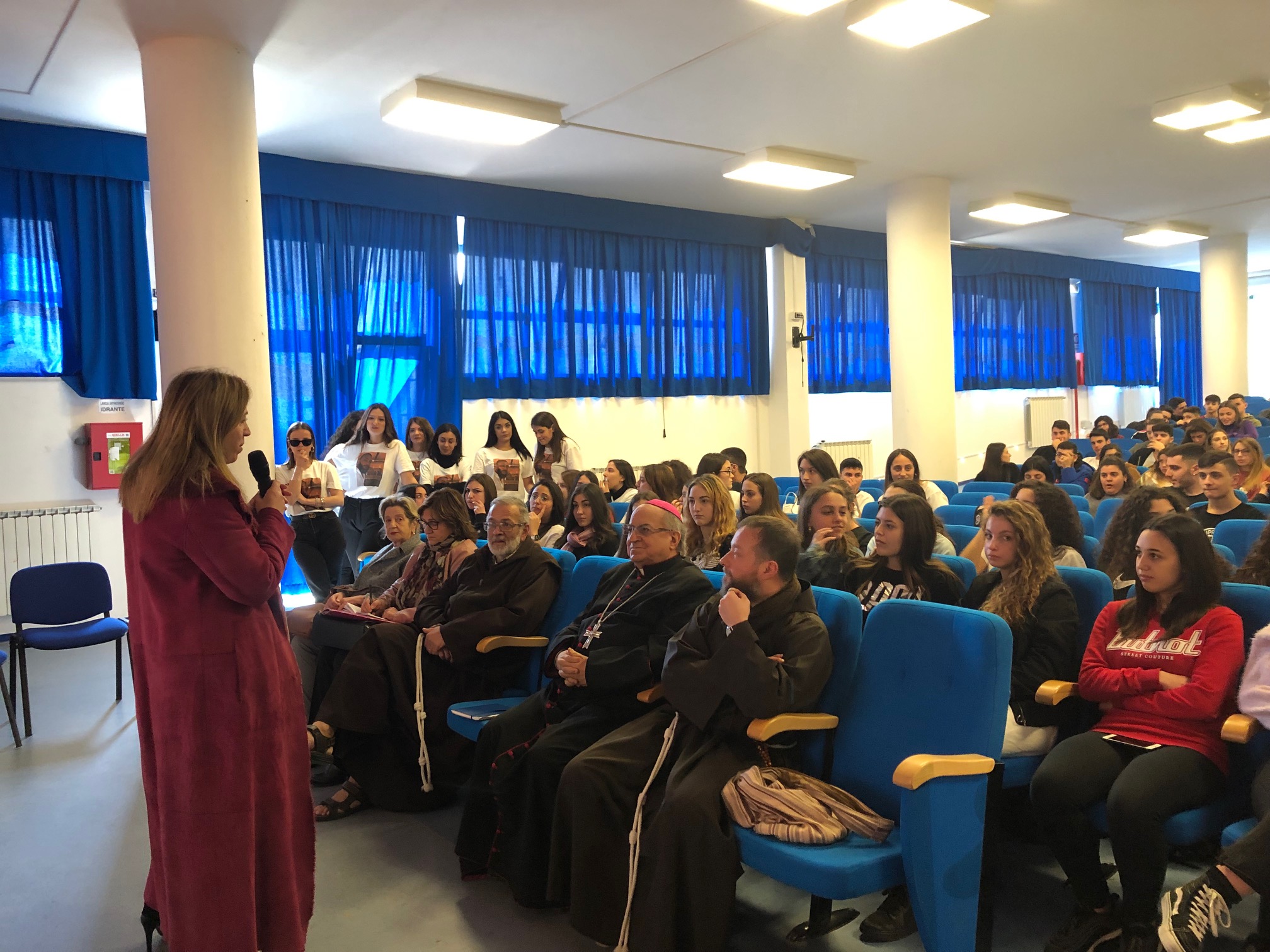 Don Milani asseriva che il sapere serve per essere condiviso. Ed è proprio questo il suggerimento nell’intervento del vescovo Gennaro Pascarella in visita pastorale all’Istituto “Virgilio”. L’evento è stato organizzato dal dirigente scolastico Rossella Tenore in sinergia con il gruppo di docenti Andreina Moio, Anna Montalto, Romina Di Pietro, Maria Teresa Moccia Di Fraia e Mariella Labbiento. La kermesse si è svolta nell’auditorium dell’istituto di via Vecchia San Gennaro e ha coinvolto numerose classi. L’inizio è stato movimentato dalla coralità e dalla magia della musica, difatti Sara della 5°A – la classe di Carmine Ruggiero, il giovane che di recente ha perso la vita travolto da un’auto mentre guidava il suo scooter– ha cantato la canzone «A mano a mano» nella versione di Rino Gaetano, dedicandola al compagno, insieme all’intera scolaresca accompagnata dalla professoressa Maddalena Annigliato. Al termine dell’esibizione canora, l’intera sala era commossa, anche per il ricordo accentuato dalle magliette bianche decorate con la foto e la scritta in rosso: «Carmine vive». Una studentessa ha quindi letto la poesia “Trova il tempo” di Madre Teresa di Calcutta, un inno alla vita e all’altruismo e un vero e proprio vademecum per affrontare con coraggio l’esistenza, soprattutto in età giovanile. Prima del dibattitto con i ragazzi, monsignor Pascarella ha chiesto un minuto di silenzio collettivo, in memoria di Carmine, per una riflessione collettiva e silenziosa.