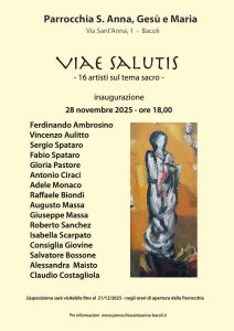 Venerdì 28 novembre, alle ore 18, inaugurazione della Mostra “Viae Salutis – 16 artisti sul tema sacro”, nella parrocchia Sant’Anna, Gesù e Maria a Bacoli (via Sant’Anna, 1).