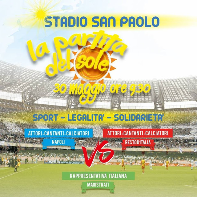 Martedì 30 maggio, si terrà allo Stadio S. Paolo di Napoli un grande evento di calcio-spettacolo, intitolato “LA PARTITA DEL SOLE”, e dedicato alla valorizzazione dello Sport come strumento per costruire integrazione e promuovere i valori della solidarietà e della legalità.