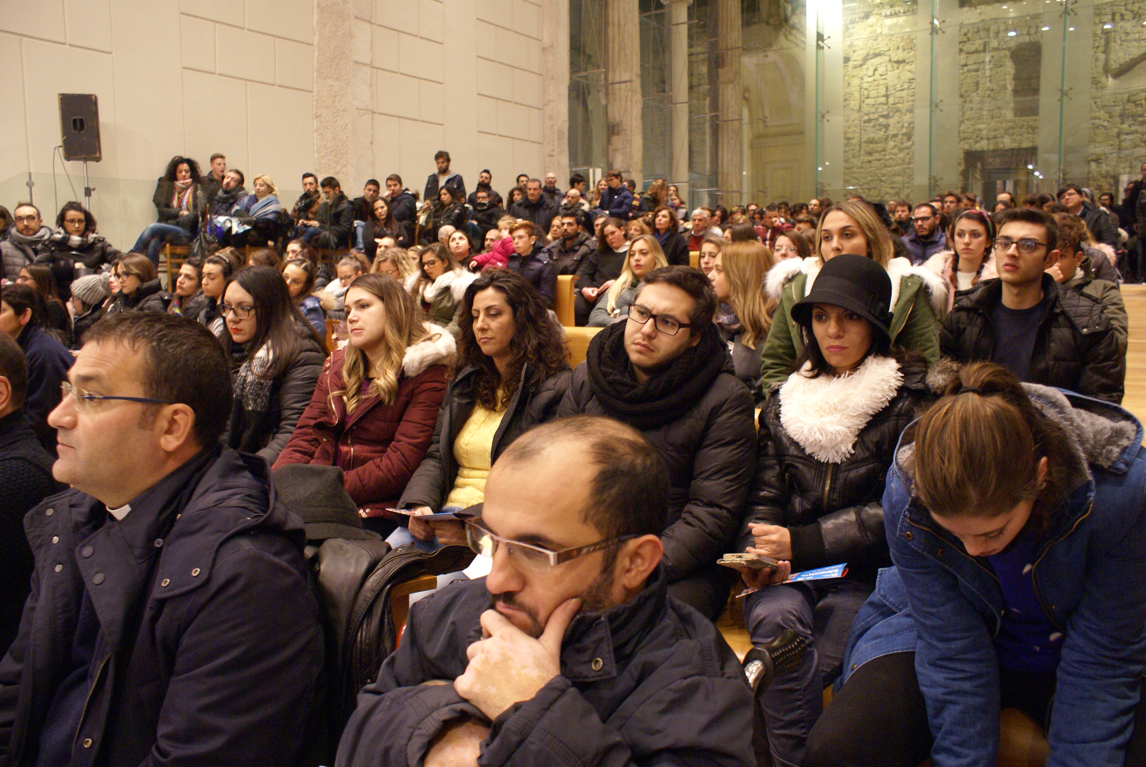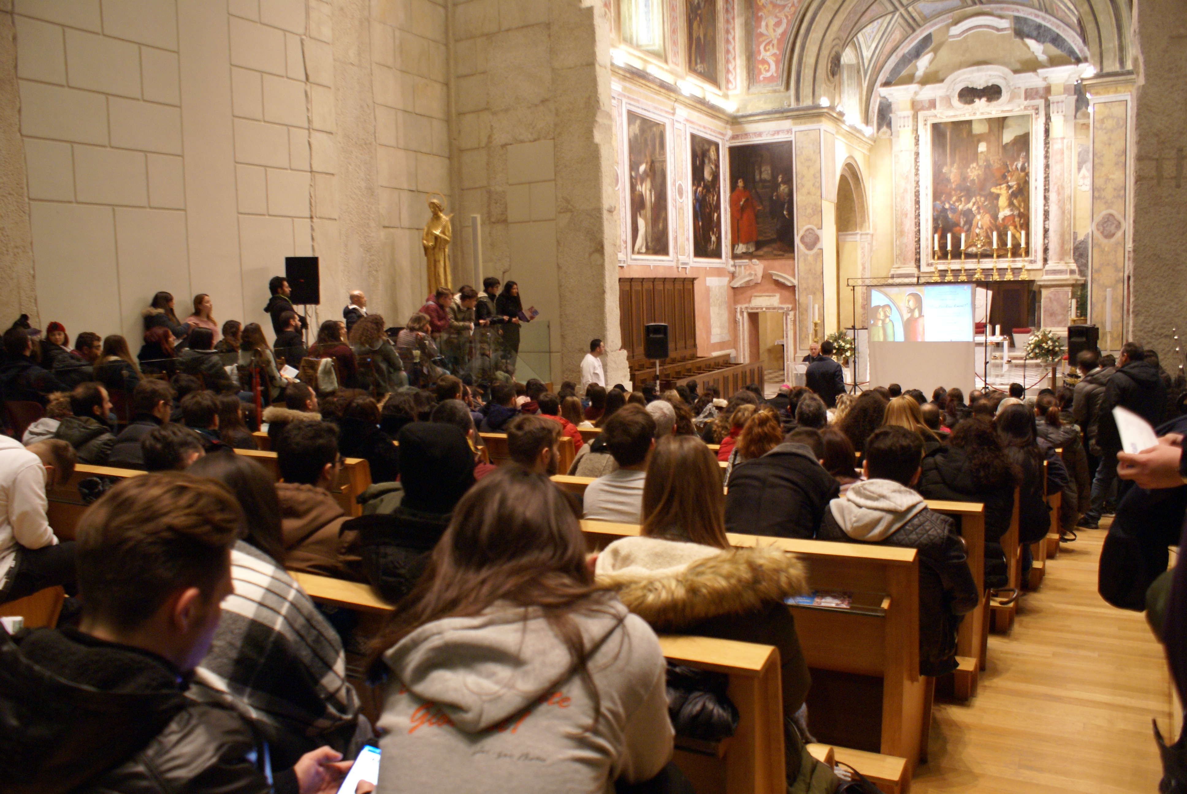 Nel duomo del Rione Terra, gremito di giovani, la domanda «Maestro, dove dimori?» è stata il filo conduttore della serata dedicata all’inizio delle attività della Pastorale giovanile diocesana. «Venite e vedrete», rispose Gesù a questa domanda. Allo stesso modo Papa Francesco, parlando del Sinodo dei Giovani, ha ribadito che questa semplice frase non è rivolta solo ai discepoli di Gesù, ma anche a noi giovani che dobbiamo avere il coraggio di scegliere la via giusta per saper viaggiare nella vita. Quest’ultima, infatti, non è senza direzione: ha uno scopo, datoci da Dio. Tutto ciò avviene nell’istante in cui udiamo quella voce o sentiamo quell’impulso che ci invita a metterci in cammino nonostante il frastuono del mondo. Qualunque sia la nostra vocazione, l’importante è essere sempre coraggiosi, generosi e soprattutto gioiosi per poter prendere in mano la nostra vita, mirare alle cose più profonde e conservare sempre un cuore libero. «I giovani – dice il Papa – sono un dono da amare e incoraggiare per far sì che questo sinodo, ovvero questo “camminare insieme”, li porti a rispondere alla chiamata che il Signore rivolge ad ognuno di loro e questo è possibile nella misura in cui, anche attraverso l’accompagnamento di guide sagge ed esperte, sapranno intraprendere un itinerario di discernimento per conoscere il progetto di Dio sulla loro vita e raggiungere la felicità, quella vera».