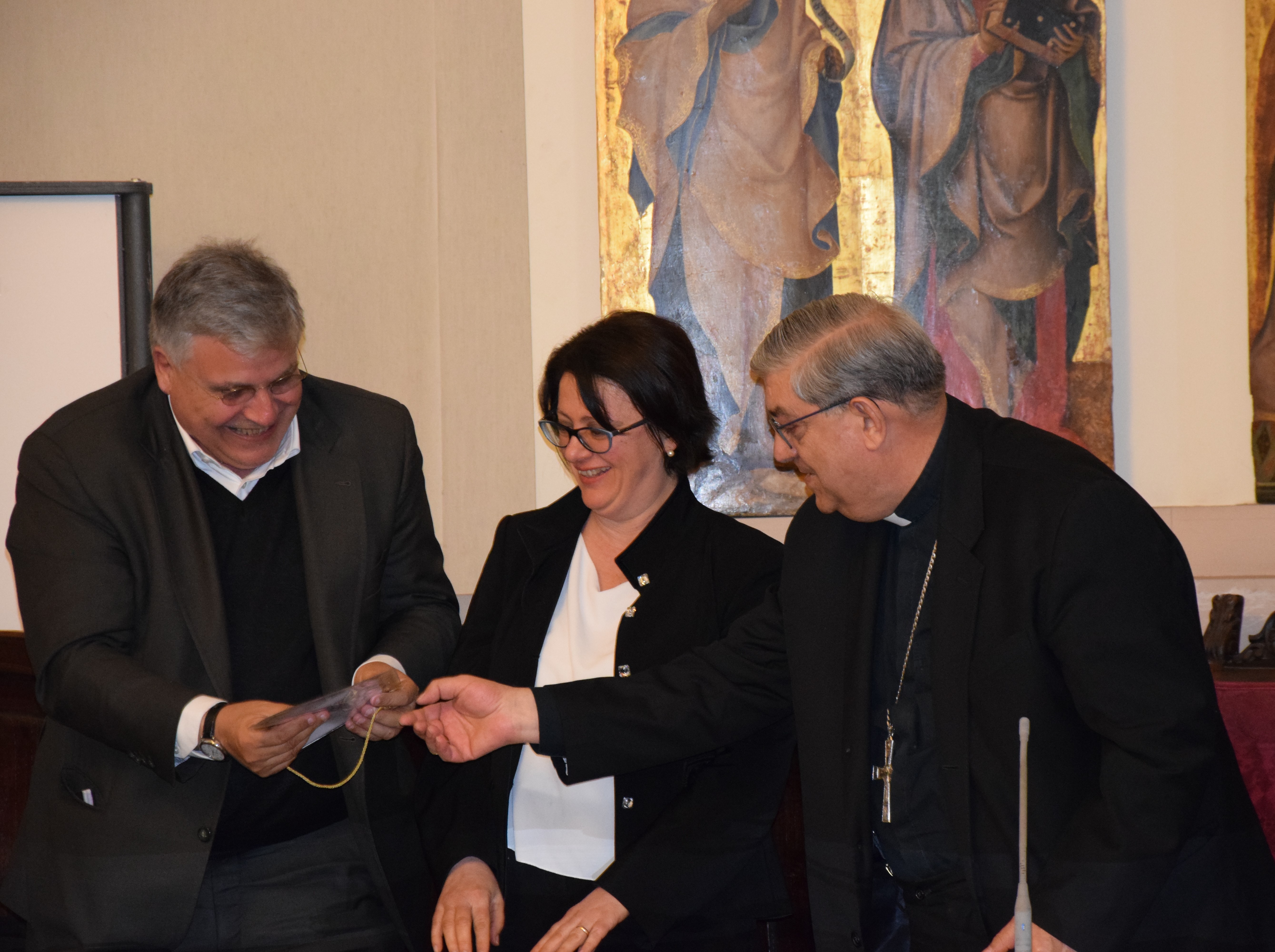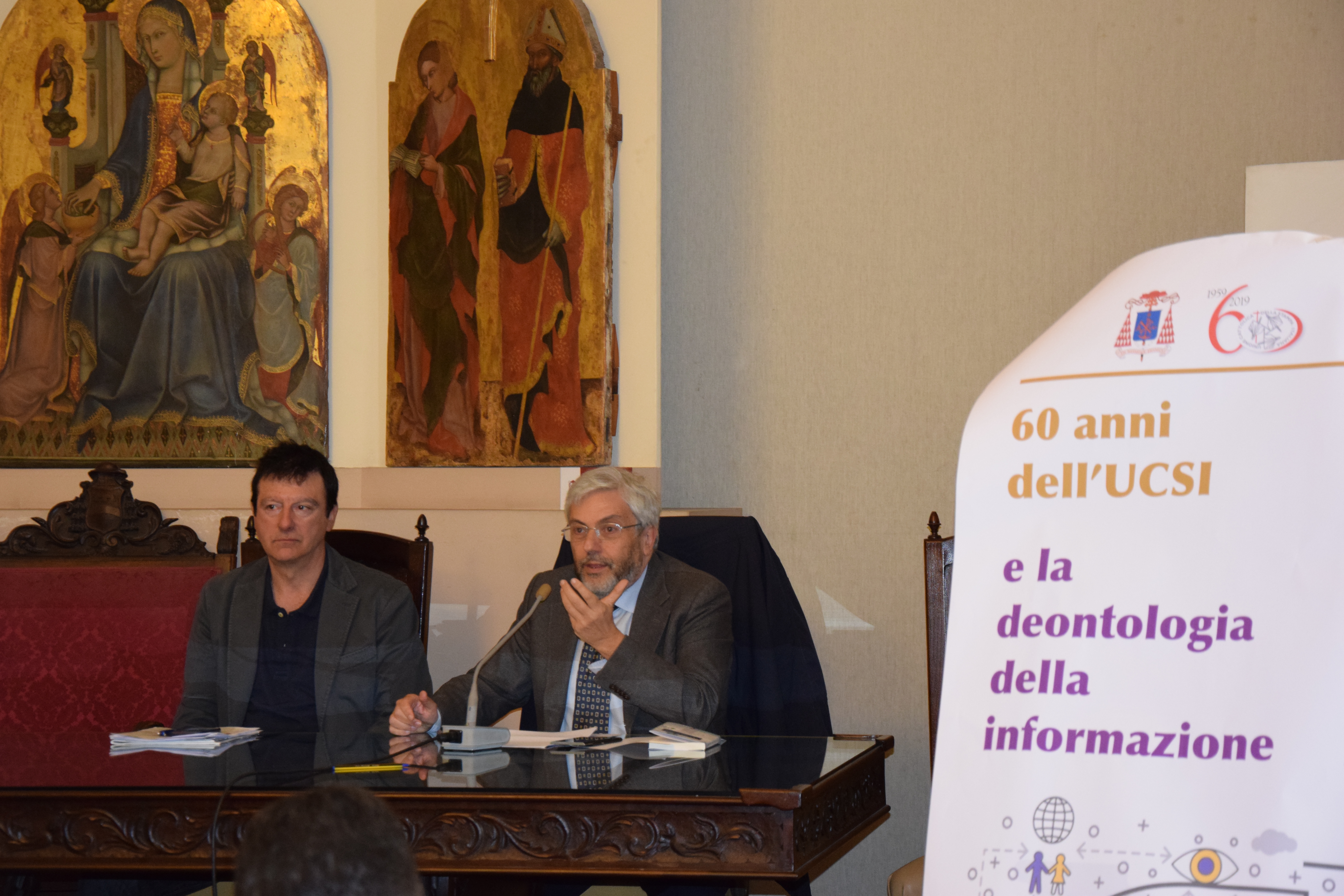 De Luca ha ricordato l’impegno dell’organizzazione, sottolineando il ruolo dei comunicatori dell’informazione, oggi sempre più delicato, in particolare per i cattolici: «Un giornalista deve innanzitutto avere a cura la democrazia, assumere la deontologia non come obbligo ma come responsabilità per una missione nella società. La deontologia non è un concetto statico, cambia nel tempo, include i contenuti e le nuove forme della comunicazione, che poi generano nuove esperienze comunicative (dinamiche social, web e così via)». Richiamando le considerazioni di Jorge Luis Borges, secondo il quale “stampando una notizia a grandi lettere la gente pensa che sia indiscutibilmente vera”, il presidente dell’Ucsi nazionale ha ricordato che un giornalista deve aiutare ad “entrare dentro” e ”andare oltre” le notizie, lasciarsi coinvolgere nel lavoro che fa (che non può essere mera trasmissione di notizie). «Occorre trovare un equilibrio tra il coinvolgimento in quello di cui sta parlando e il necessario distacco. A volte – ha concluso De Luca – bisogna chiedersi come dare le notizie, ma anche se sia un bene o un male darle, ovviamente non parlo di quelle che richiedono l’obbligo della denuncia».