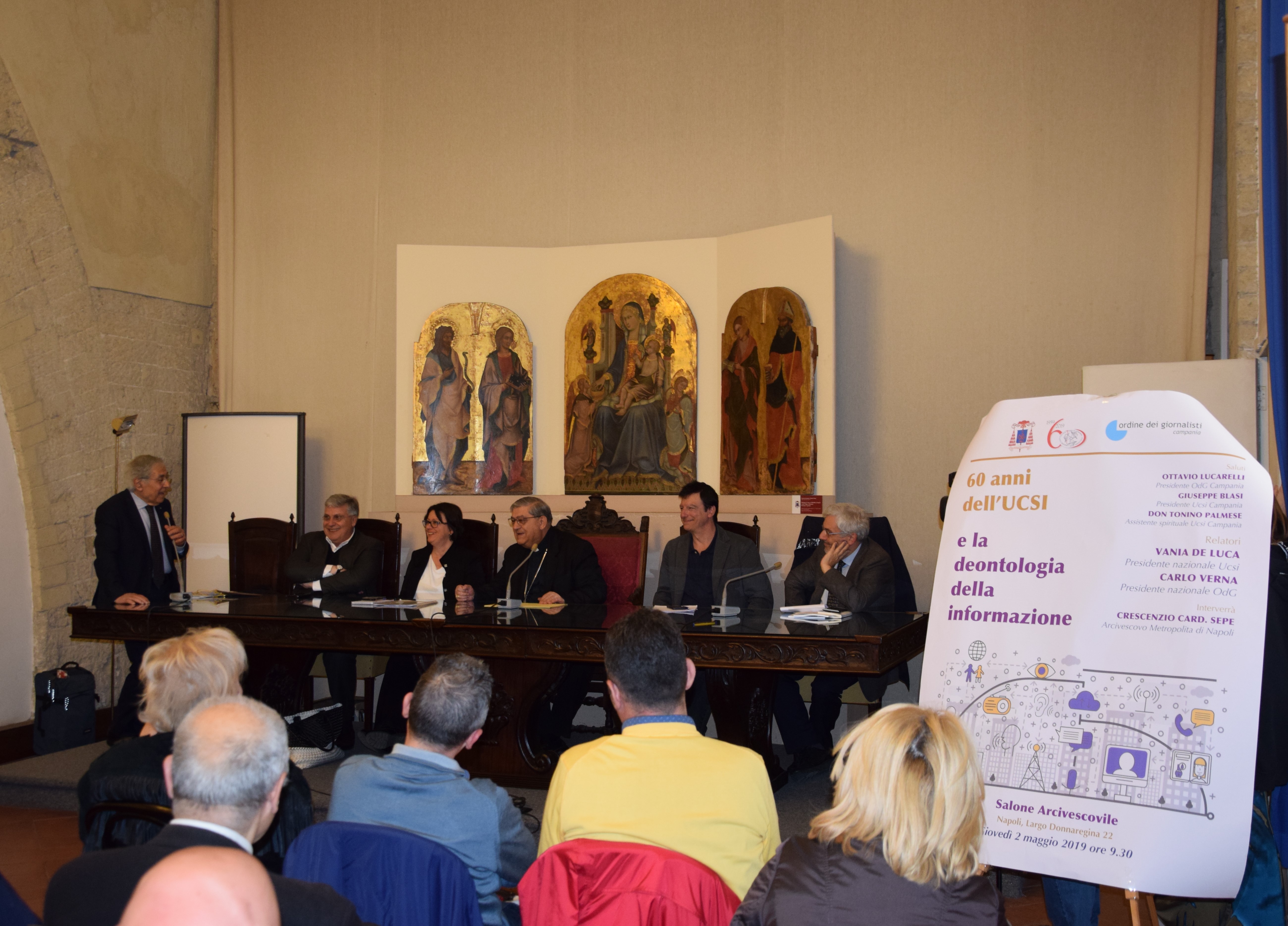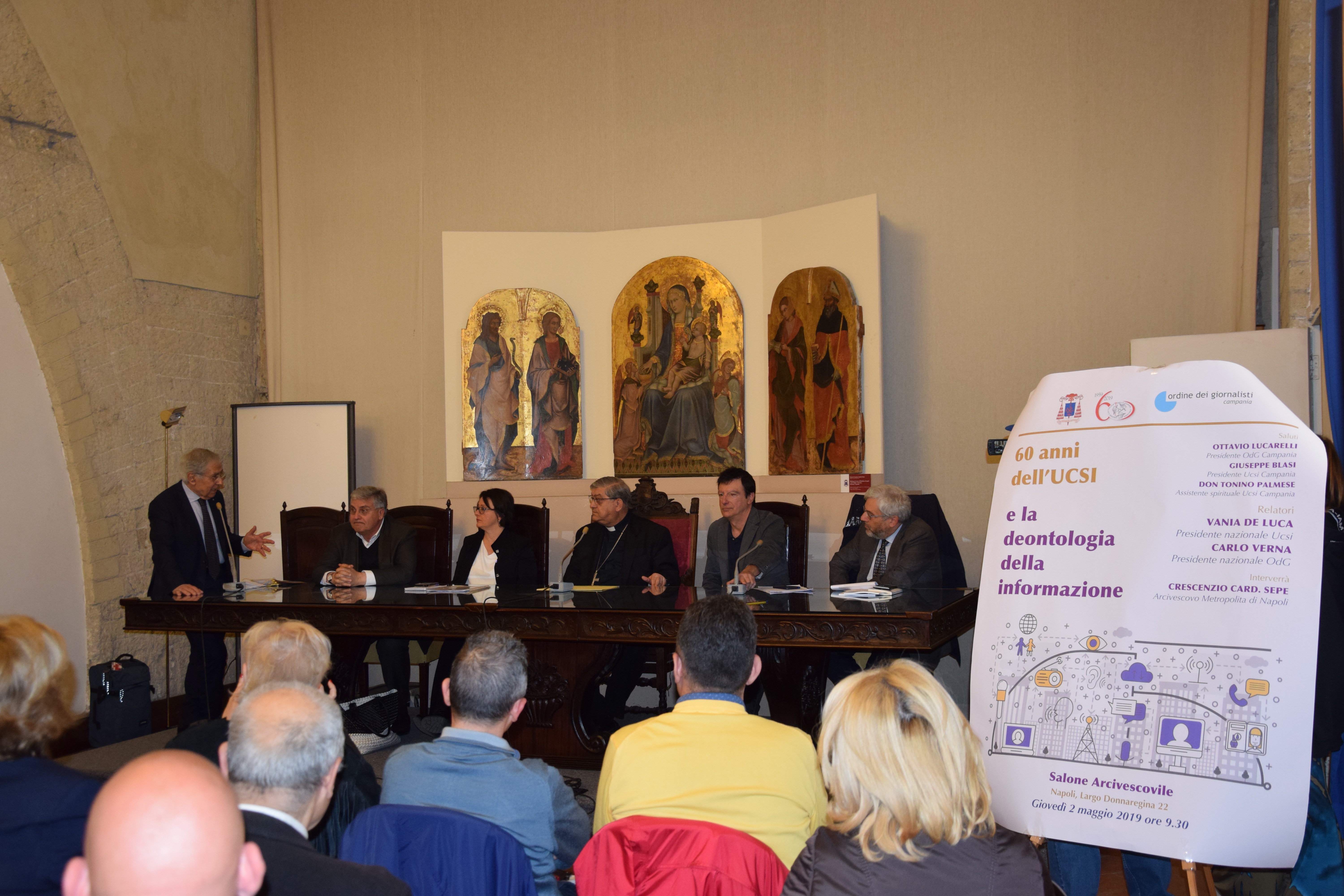 Venerdì 4 maggio si è svolto un incontro nel salone dell’Arcidiocesi di Napoli per ricordare i 60 anni dell’Unione Cattolica Stampa Italiana. Il convegno è stato aperto con i saluti del presidente dell’Ordine regionale dei giornalisti, Ottavio Lucarelli, e del presidente dell’Ucsi Campania, Pino Blasi. Sono intervenuti il presidente dell’Ucsi nazionale, la vaticanista Vania De Luca, e il presidente dell’Ordine nazionale dei giornalisti, Carlo Verna.