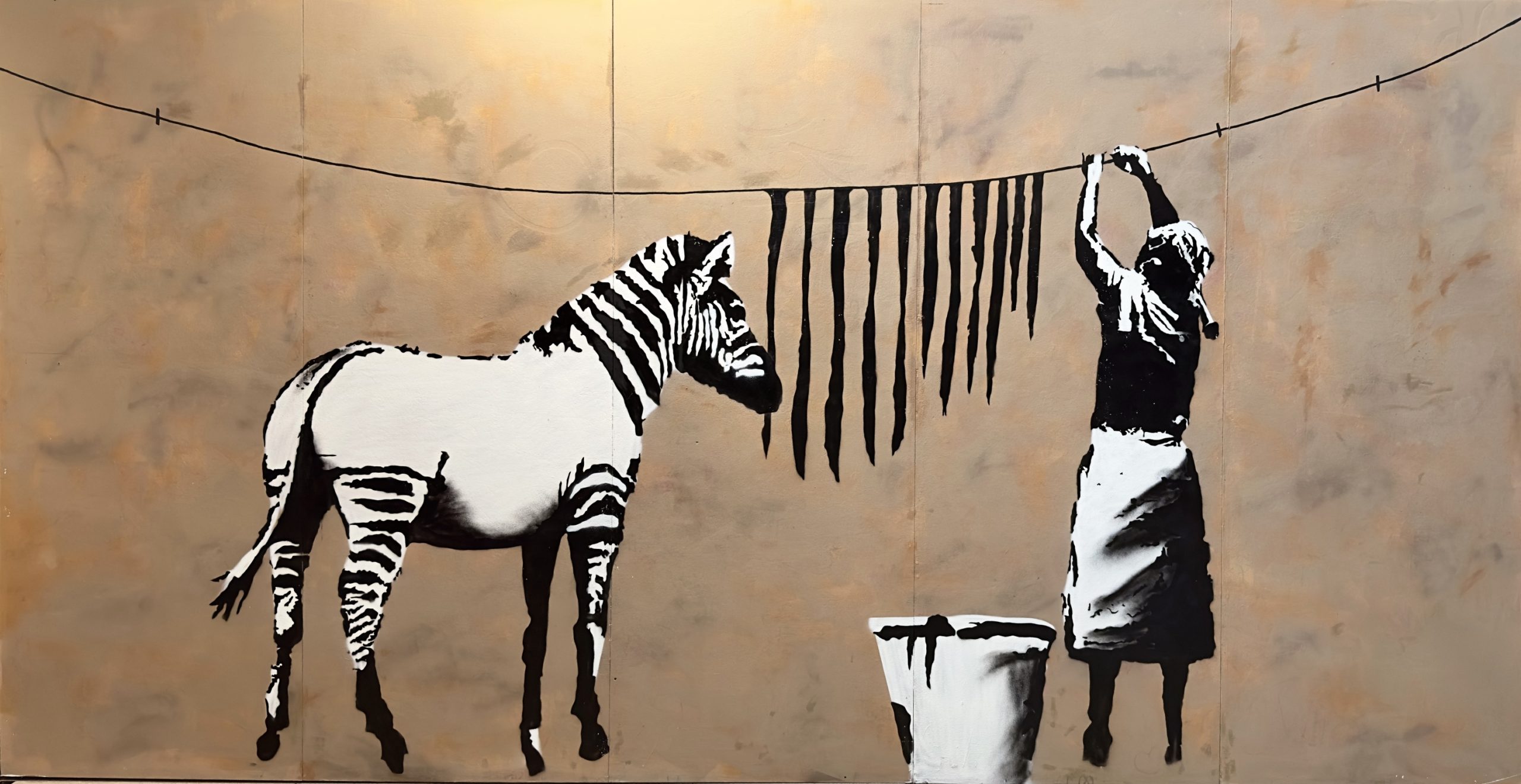 L’arte di strada di questo iconico artista esplora temi provocatori come la guerra, la pace, la povertà, il consumismo, sempre con toni enigmatici e di forte impatto.