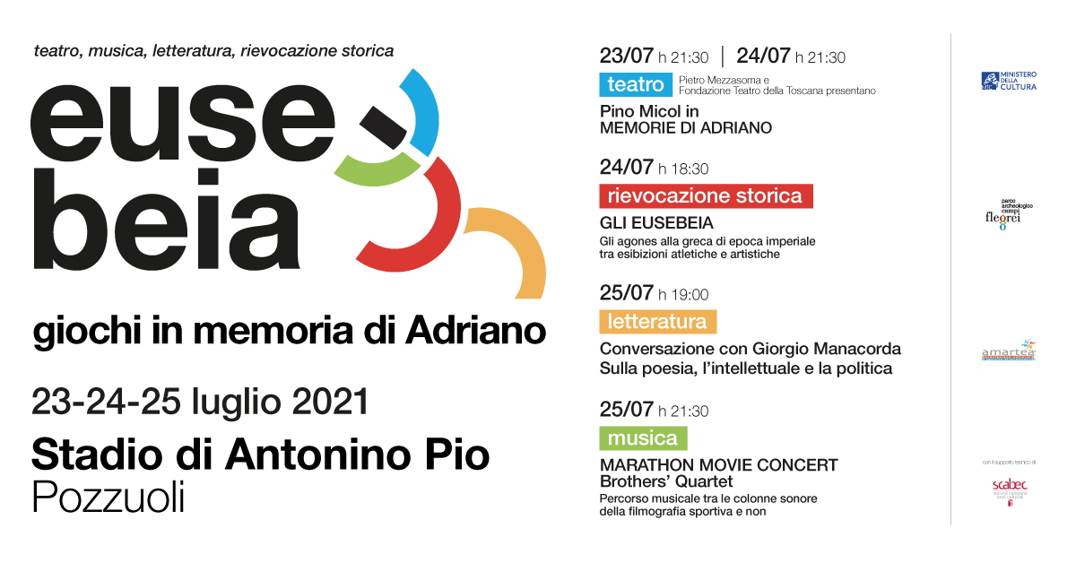 Al Parco archeologico dei Campi Flegrei tornano a rivivere gli EUSEBEIA, i giochi che si celebravano nello Stadio dell’antica Puteoli. Gli eventi, che si svolgono nello Stadio Antonio Pio di Pozzuoli, dal 23 al 25 luglio, sono presentati dall’ente: “Gli agoni alla greca, che si svolgevano con cadenza quinquennale – spiegano gli organizzatori – furono istituiti dall’imperatore Antonino Pio per onorare la memoria del suo predecessore e padre adottivo, il filelleno Adriano, morto a Baia nel 138 d.C. e sepolto temporaneamente nella villa di Cicerone situata in prossimità del luogo dove sorgerà lo stadio. Il concorso, che comprendeva gare atletiche (corsa, lotta, pugilato, pancrazio) e gare artistiche (poesia e musica), era inserito in un circuito agonistico internazionale che in Occidente comprendeva i Sebastà di Napoli e i Capitolia di Roma. A sfidarsi atleti ed artisti provenienti da vari luoghi del Mediterraneo, di cui nomi e vittorie sono ricordati dalle fonti epigrafiche e letterarie. Lo Stadio Antonino Pio, che è stato riportato parzialmente in luce nel corso delle indagini archeologiche compiute nel primo decennio del Duemila, era uno dei monumenti più importanti di Puteoli e costituisce una delle rare attestazioni di questa tipologia di edifici per spettacoli nel mondo occidentale romano. Vivremo insieme un week end di teatro, letteratura, musica, sport e rievocazione storica grazie all’Associazione Amartea che, insieme a noi, ha organizzato l’evento”.