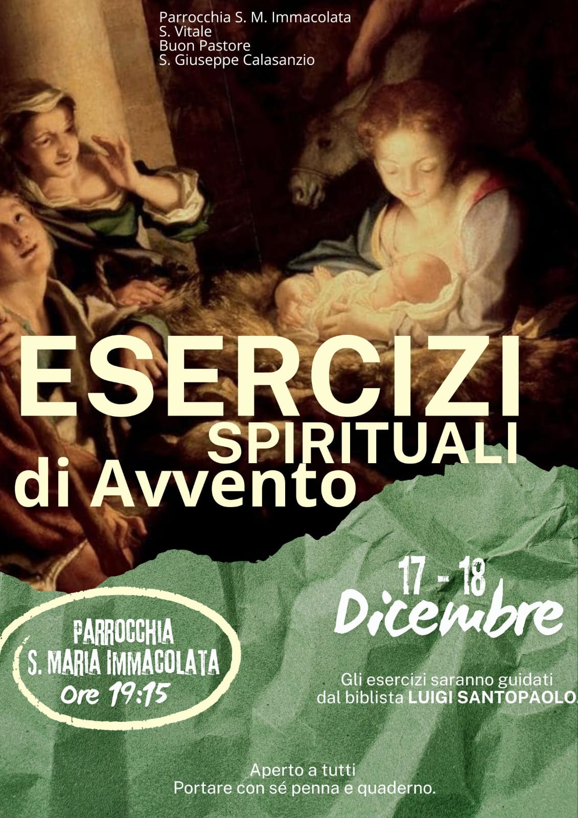 Gli esercizi spirituali s’inseriscono nel Percorso biblico interparrocchiale, organizzato da Immacolata, Buon Pastore, San Vitale e San Giuseppe Calasanzio, dal titolo “Carità che crea comunione. Vivere le relazioni secondo il Vangelo”.