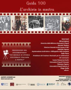 Martedì 9 dicembre, nella Biblioteca nazionale “Vittorio Emanuele III” di Napoli (piazza del Plebiscito, 1), apertura della Mostra “Guida 100”. Alle ore 16.30, proiezione del documentario “Un secolo di storia culturale italiana a Napoli” (programma nella locandina).