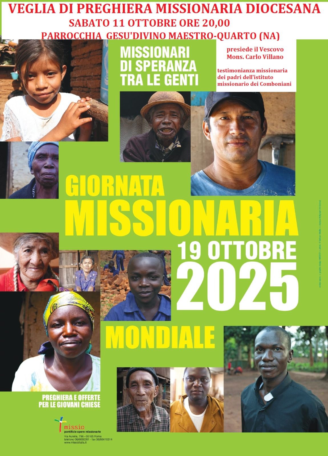 Sabato 11 ottobre, alle ore 20, nella parrocchia Gesù Divino Maestro a Quarto (Via Marmolito, 1), si svolgerà la Veglia di preghiera missionaria, presieduta dal vescovo Carlo Villano.